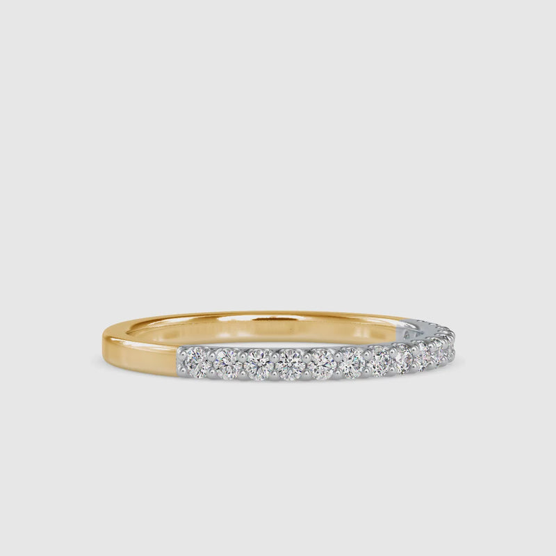 Each lab-grown diamond is carefully placed by skilled artisans to ensure uniform sparkle, smooth comfort, and lasting durability. The half eternity design offers a practical balance of beauty and wearability, allowing for easy resizing while maintaining a refined appearance. Finished with a polished gold band, this ring delivers timeless sophistication suitable for daily wear.