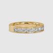 The channel setting protects the diamonds while creating a clean and polished look, making it ideal for daily wear. Its balanced design pairs beautifully with engagement rings or stands confidently on its own as a wedding band or anniversary ring. The polished gold band adds warmth, comfort, and timeless appeal.