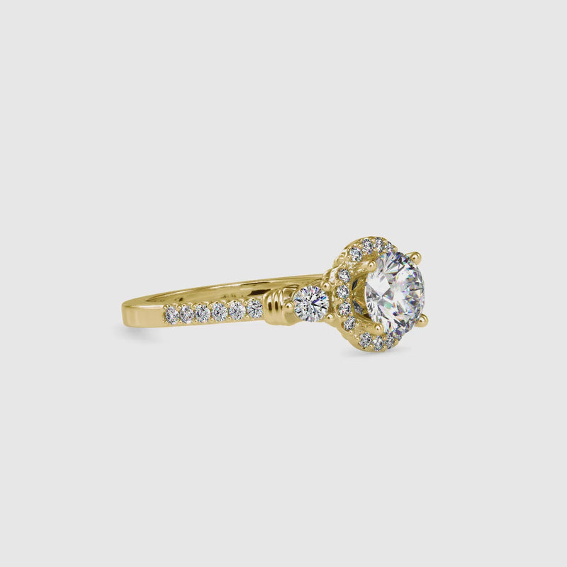 Handcrafted by skilled artisans, each lab-grown diamond is meticulously set to ensure balance, security, and lasting shine. The polished gold band provides a refined foundation that complements the halo, delivering both comfort and beauty. Designed for modern elegance with enduring appeal, this ring blends classic craftsmanship with contemporary sparkle.