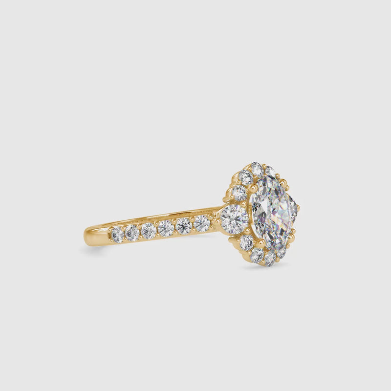 Handcrafted by skilled artisans, each lab-grown diamond is carefully set to ensure symmetry, security, and lasting shine. The halo frames the center stone beautifully without overpowering it, while the polished gold band provides a refined and comfortable foundation. Designed for everyday elegance and special occasions alike, this ring blends classic beauty with modern craftsmanship.
