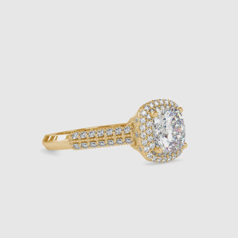 2.58Ct Cushion Cut Double Halo Lab-Grown Diamond Gold Ring