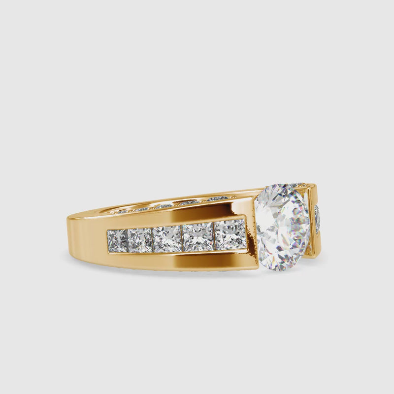 Striking and contemporary, this 4.67 Ct Round Cut Tension Lab-Grown Diamond Gold Ring is designed for those who love bold design with refined elegance. The round-cut diamond appears suspended between the band, held securely by a precision tension setting that allows maximum light to flow through the stone. The result is extraordinary brilliance and a clean, architectural look that stands out effortlessly.