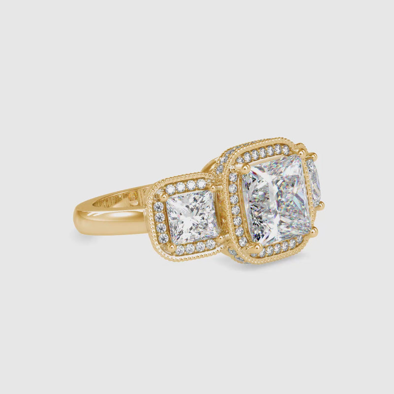 5.23Ct Princess Halo Lab-Grown Diamond Gold Ring